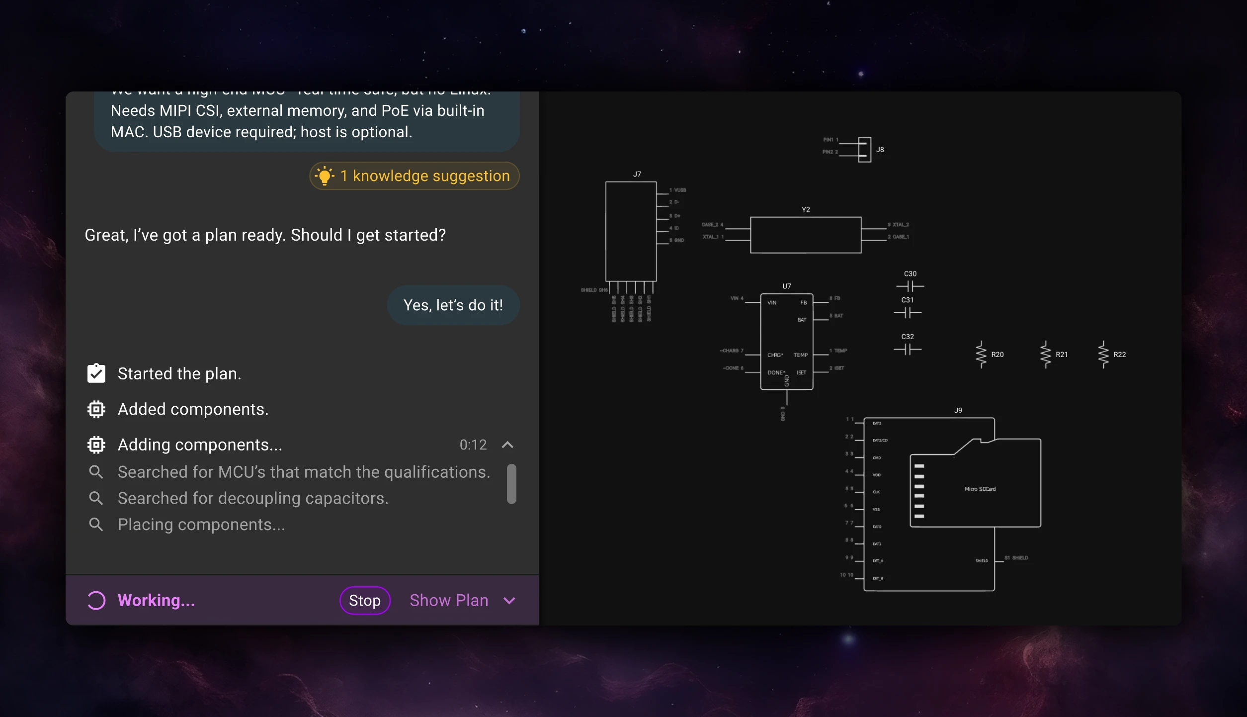 Starting a new hardware project can be overwhelming, but the completely overhauled Copilot simplifies the process by guiding you through component selection, spec verification. Just describe your goals and Copilot engages in a focused conversation to refine your requirements like a seasoned hardware engineer.